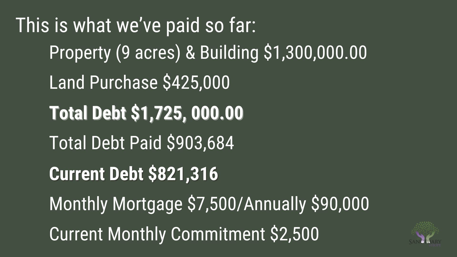Click here to commit to Breaking Free! This is The Sanctuary of Hope’s campaign to eliminate DEBT and BREAK FREE our potential for greater Ministry to our church, community, and the world!